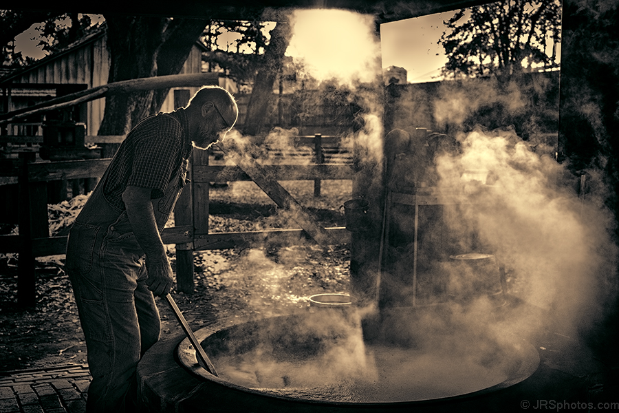 04/18/2026 | Categories: Black and white, Food, People | Tags: food, liquid, man, molasses, rustic, smoke, sorghum, stirring, sunset, syrup | Comments Off